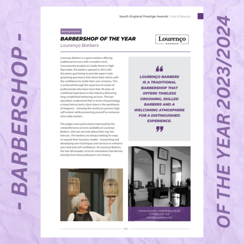 Our recent award as The Winner of South England Prestige Awards 2023/2024 Barbershop of the Year saw our team featured on a beautiful magazine spread! 📖